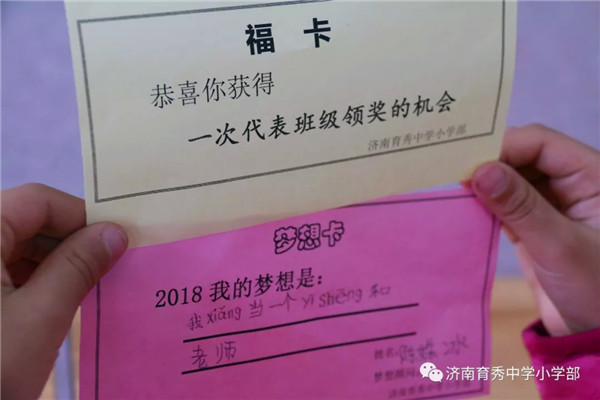 打開紅包,里面有一張"夢想卡"和一張幸運(yùn)"福卡"