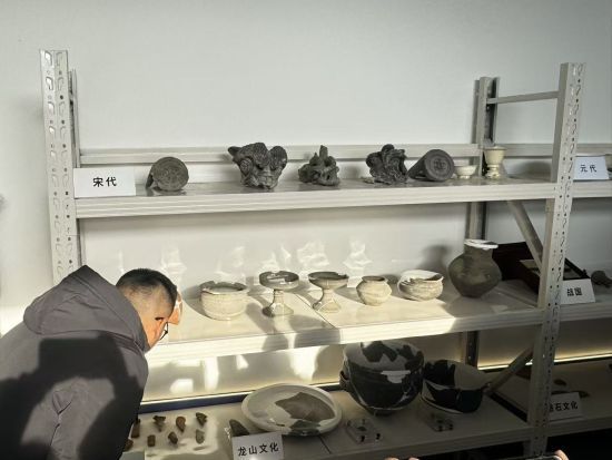 城墻西側(cè)發(fā)現(xiàn)的壕溝由自然河道改造而成,總寬度超50米,溝底最深距地表約9.8米。溝底淤沙層中出土大汶口文化、龍山文化等不同時期陶片,印證了遺址文化延續(xù)性。城墻以東則發(fā)現(xiàn)龍山文化至近現(xiàn)代的連續(xù)生活遺跡,清晰呈現(xiàn)了遺址的長期使用歷程。