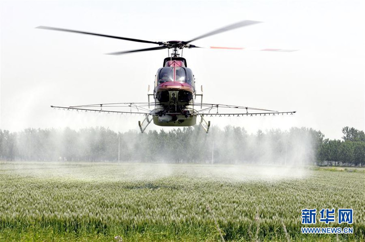 利用飛機(jī)給小麥噴藥,不但省水、省藥、省工、省時(shí),還解決了農(nóng)民一家一戶防治難的問題