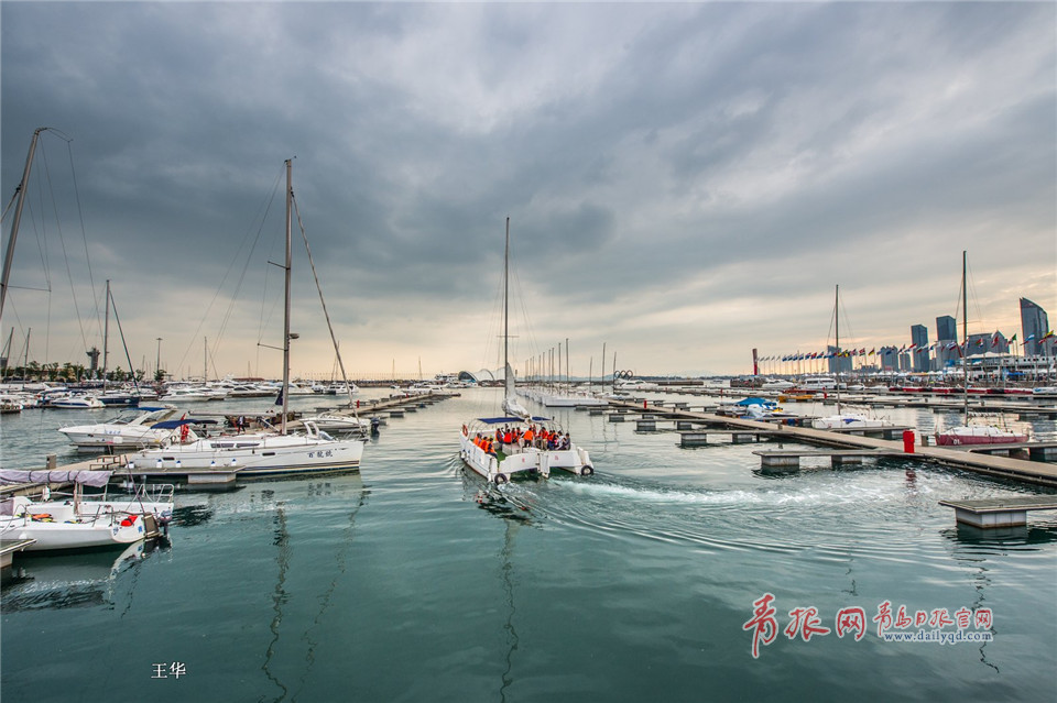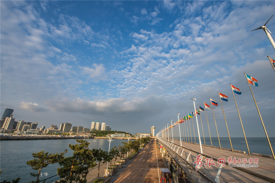 進(jìn)入仲夏的青島,風(fēng)和日麗,氣候宜人。廣角鏡頭里的青島奧帆中心,藍(lán)天白云,帆船點(diǎn)點(diǎn),美景如畫。