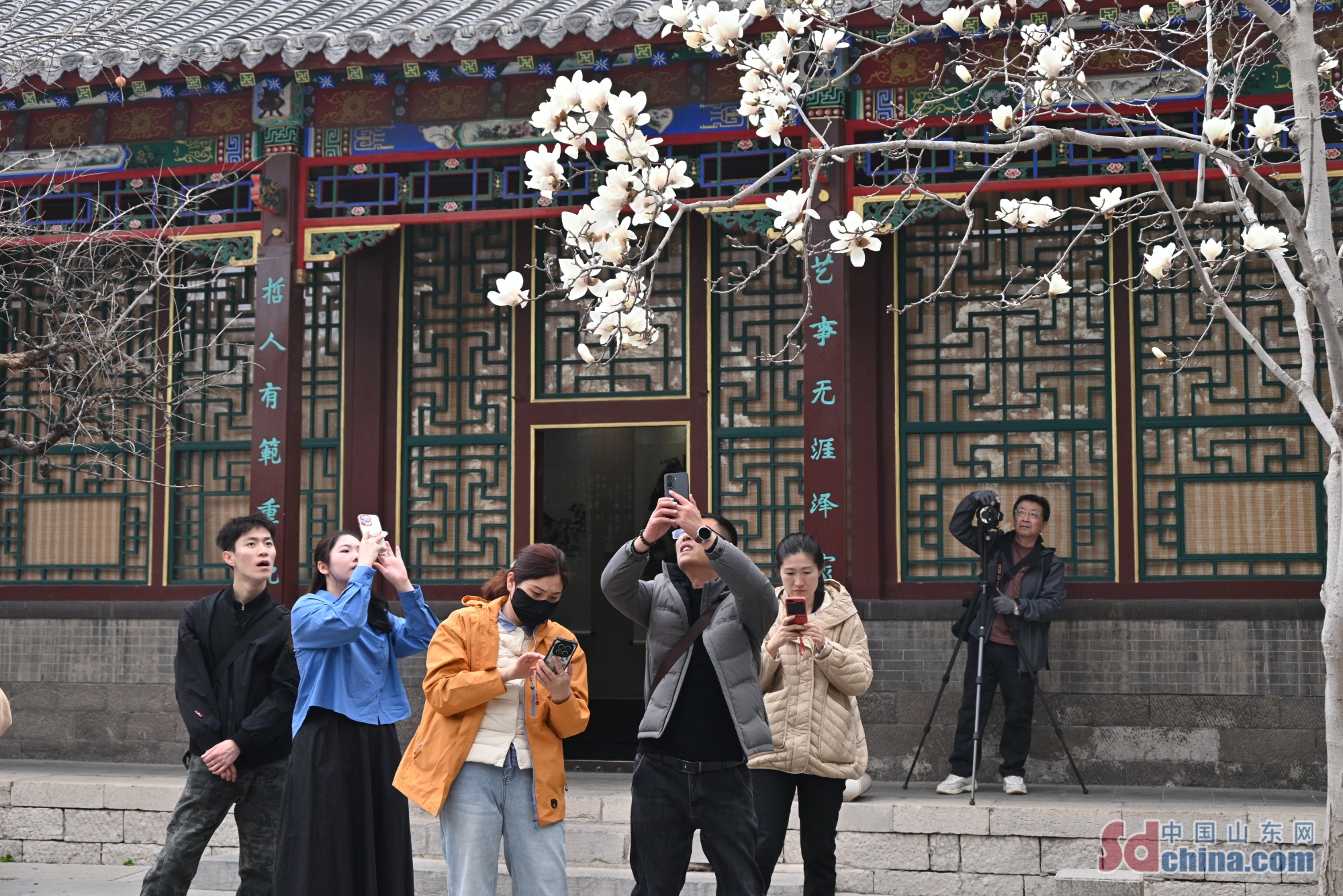 近日,隨著氣溫回升,濟南趵突泉公園內(nèi)的玉蘭花迎來盛花期,桃花、杏花也次第綻放,吸引眾多市民游客前來賞花打卡。