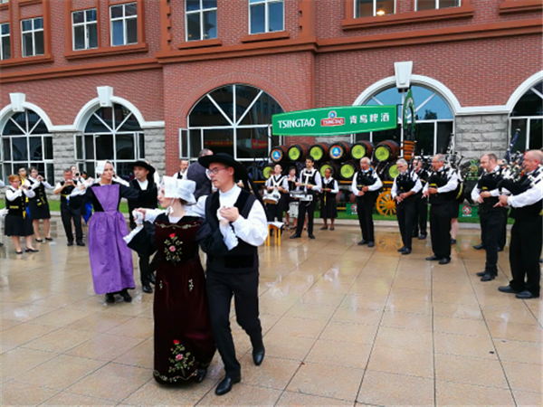 而與此同時(shí),法國(guó)布列塔尼管樂(lè)團(tuán)46名音樂(lè)家在青島啤酒一廠給市民帶來(lái)了精彩的法國(guó)布列塔尼民族音樂(lè)和舞蹈表演,一起為游客奉上了別開生面的音樂(lè)+啤酒體驗(yàn)。提前開啟了青島啤酒在啤酒節(jié)上的狂歡節(jié)奏。