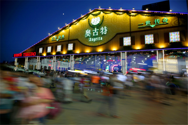 此外,啤酒節(jié)期間,青島啤酒大篷和奧古特大篷每晚都會(huì)進(jìn)行微信墻留言抽獎(jiǎng)活動(dòng),被抽中的消費(fèi)者會(huì)有精美禮品,還可以上臺(tái)參加速飲吹瓶小游戲,優(yōu)勝者還有更大獎(jiǎng)品。
