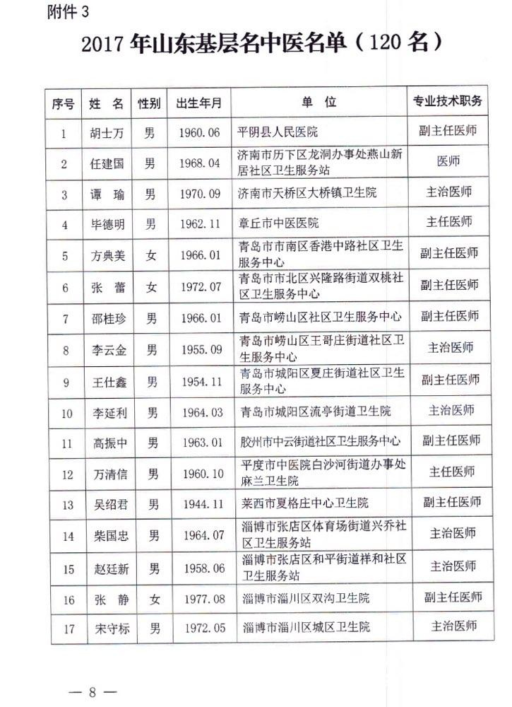 齊魯網(wǎng)6月18日訊(記者 劉冰冰)根據(jù)山東省衛(wèi)生計生委、省人力資源社會保障廳、省中醫(yī)藥管理局要求,2017年山東名老中醫(yī)、山東名中醫(yī)藥專家和山東基層名中醫(yī)名單公布,評選山東中醫(yī)藥大學(xué)教授張志剛、山東大學(xué)齊魯醫(yī)院教授張繼東等山東名老中醫(yī)10名、山東中醫(yī)藥大學(xué)教授張成博、山東省立醫(yī)院主任醫(yī)師牟林茂等山東名中醫(yī)藥專家80名、山東基層名中醫(yī)120。