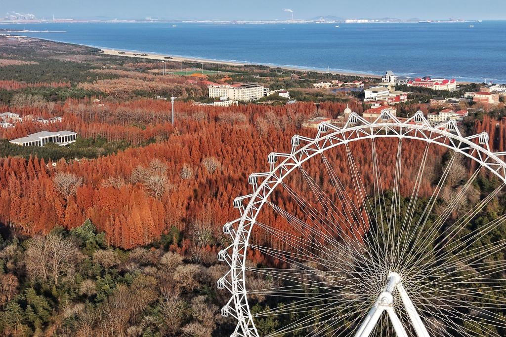金色沙灘與碧綠大海交相襯托,各色樹葉斑斕交織,色彩錯(cuò)落有致,繪就了一幅如詩如畫的自然畫卷。