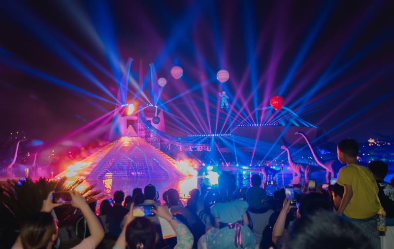 《D秀》閃耀夜空,內(nèi)顯人文關(guān)懷,外現(xiàn)前沿科技,首次將館秀、湖秀、空秀三維合一,讓人們沉浸式體驗的同時,能夠寓情于景,領(lǐng)悟大秀背后的恐龍文化內(nèi)涵。這是中華恐龍園從“無中生有”到“有中生新”的又一次嘗試,也是其用行動演繹民族企業(yè)永葆初心、砥礪前行的真摯情懷。