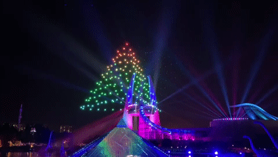 在這個(gè)環(huán)節(jié),技術(shù)團(tuán)隊(duì)通過(guò)可靠的信號(hào)處理、精準(zhǔn)的飛行軌跡,解決了無(wú)人機(jī)的通信系統(tǒng)難點(diǎn),為游客呈現(xiàn)了精美的視覺(jué)感官效果。此外,《D秀》是一場(chǎng)常態(tài)化的大秀,面臨夏天高溫、冬天低溫、雨雪及極端天氣的影響,如何為觀眾提供穩(wěn)定可靠安全的飛行表演,是無(wú)人機(jī)領(lǐng)域的大難題。《D秀》中,工程師通過(guò)反復(fù)實(shí)驗(yàn)與技術(shù)攻克,實(shí)現(xiàn)了無(wú)人機(jī)多角度、多高度、有遮擋時(shí)、包括極端天氣情況下信號(hào)的持續(xù)可靠,使其能夠在建筑之間、湖面低空、VIP高空視角都呈現(xiàn)異常精彩的炫技造型,讓觀眾全方位全浸潤(rùn)的體驗(yàn)未來(lái)世界的獨(dú)特感官享受,讓無(wú)人機(jī)成為了《D秀》中的一道獨(dú)特的亮點(diǎn)。
