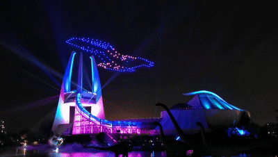 如今,無(wú)人機(jī)表演已成為了城市夜秀的新寵。2020年,中華恐龍園率先在常州推出了無(wú)人機(jī)天幕秀。打破表演維度的無(wú)人機(jī)矩陣,主題鮮明的立體造型、多維動(dòng)態(tài)的圖案,結(jié)合美輪美奐的館體燈光,璀璨了龍城夜色,多次霸屏朋友圈。