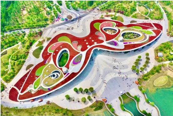 本屆花博會是首次在島嶼上、鄉(xiāng)村里、森林中舉辦的花事盛會,在森林覆蓋率高達80%的崇明東平國家森林公園的原址上,充分利用水林田路的自然脈絡,運用生態(tài)環(huán)保新技術、新裝備、新工藝,總體規(guī)劃“三區(qū)”“一心”“一軸”“六館”“六園”的整體布局,布展總面積近1萬畝,相當于934個足球場,是歷屆花博園中面積最大的一次。