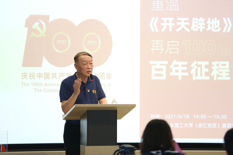 之后,上海教育系統(tǒng)高級(jí)職稱評(píng)委、中國(guó)作家協(xié)會(huì)會(huì)員、上海文聯(lián)委員、曾任上影集團(tuán)副總裁汪天云教授做了主題黨課。作為《開天辟地》編劇之一,汪天云分享了這一紅色電影背后的故事。在電影創(chuàng)作中,如何表現(xiàn)陳獨(dú)秀與兒子之間的關(guān)系?如何設(shè)計(jì)李大釗早年的性格行為?對(duì)此,汪天云表示,創(chuàng)作過程其實(shí)遵循了兩個(gè)原則:大事不虛,小事不拘!耙獙扅h創(chuàng)建的偉大歷史事件,只有一個(gè)辦法,就是遵循歷史唯物主義和辯證唯物主義。所謂歷史唯物主義就是要實(shí)事求是,辯證唯物主義就是要結(jié)合當(dāng)下創(chuàng)作實(shí)際!