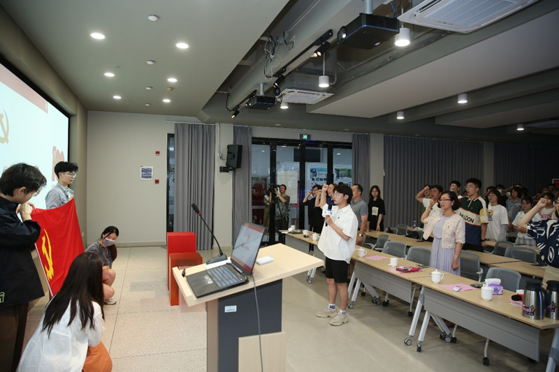 在2017級(jí)本科生黨員吳峪峰的領(lǐng)誓下,現(xiàn)場(chǎng)全體黨員重溫了入黨誓詞,共同回顧這一光榮而激動(dòng)的時(shí)刻。