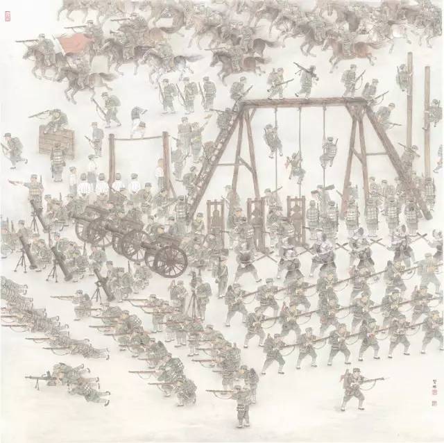 2014年3月,油畫《突擊》入選“世紀(jì)追夢一百年中國時(shí)代圖典展”。 (中華藝術(shù)宮)