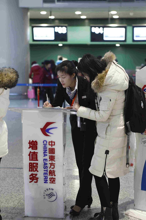 在上海虹橋浦東兩場,東航加大值機區(qū)域柜臺資源投放,充分利用移動值機和自助行李托運柜臺等現(xiàn)有資源設備,安排專門人員引導旅客,幫助旅客便捷辦理手續(xù)。在節(jié)日期間,東航將在空中和地面營造節(jié)日氛圍,開展特色活動,推出節(jié)日傳統(tǒng)美食,溫暖旅客的回家路。截至2016年底,東航已在53架寬體客機上開通了空中互聯(lián)服務,每月開通空中互聯(lián)服務的航班近3500班,在帶給旅客空中“網(wǎng)上沖浪”體驗的同時,更可以在空中與家人問候拜年。