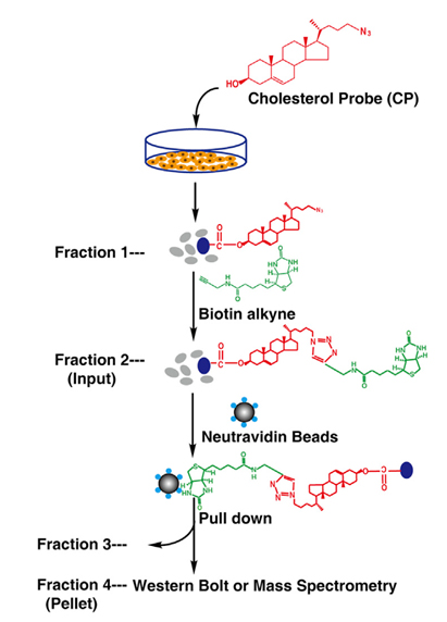 據(jù)了解,自1996年以來hedgehog蛋白一直被認(rèn)為是唯一的膽固醇修飾蛋白。20多年來,雖然關(guān)于新的膽固醇修飾蛋白的猜想一直都有,很多實(shí)驗(yàn)室不斷嘗試,但從來沒有新的膽固醇修飾蛋白被報(bào)道。相對于經(jīng)典的翻譯后修飾,膽固醇修飾作為一種特殊的修飾一直沒有很好的鑒定方法。
