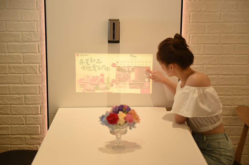 除了“情緒地帶”,智慧餐廳還提供了多元化的互動服務。門店等位區(qū)有一整面具有奇幻動感效果的投影互動墻,通過獨特的觸摸啟動可以探索必勝客的比薩從原料種植、加工、生產(chǎn),一直到制作成品、奉客、外送等一系列過程,為顧客提供趣味十足的多感官虛擬互動體驗,讓無聊的等位時間也變得興味盎然。