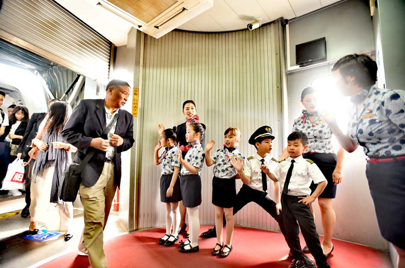央廣網(wǎng)上海5月26日消息(記者吳善陽 通訊員陸瓊 孫宜筠 林文乾)今天,MU5152北京至上海虹橋航班在迎客時(shí),有一群特別的“小機(jī)組”向旅客鞠躬致意,可愛的模樣著實(shí)給陸續(xù)登機(jī)的旅客帶來不少驚喜。這是東航為迎接“六一”兒童節(jié),開展的勞模帶教親子特色航班活動(dòng),也是東航“六一”兒童節(jié)主題活動(dòng)的主打項(xiàng)目。全國勞模李文麗以及李文麗空中服務(wù)創(chuàng)新工作室的兩對勞模師徒共同參與飛行,這些可愛的孩子就是勞模媽媽們的子女。