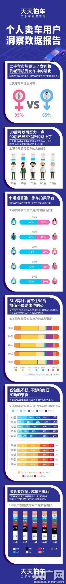 另據(jù)數(shù)據(jù)顯示,更年輕的賣車用戶,換車的頻率更高。以90后為例,雖然他們剛剛步入職場,收入普遍不高,但他們賣車時的車齡更短,里程也更短。90后車主3年以內(nèi)車齡的二手車占比達(dá)22%,5萬公里里程以內(nèi)的二手車占比達(dá)27%。同時,一些90后車主在天天拍車的調(diào)研中表示,“因為換工作或者結(jié)婚,生活有了新的規(guī)劃,賣車換車也是很自然的事”,“考慮到將手上的汽車在保值率相對較高的時候賣掉是最劃算的,所以更傾向早點(diǎn)賣車”。
