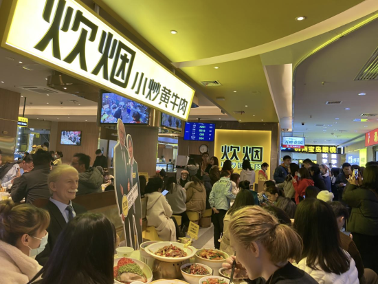 在長沙,炊煙從上午11點排隊到晚上11點,連續(xù)12個小時排隊不間斷。在上海,環(huán)球港喜迎走進聯(lián)合國的湘菜代表,可謂“強強聯(lián)合”。更巧的是,兩者都被大眾點評“吻”過,在2019年大眾點評的“必逛榜”上,環(huán)球港強勢上榜,而炊煙小炒黃牛肉作為湘菜的代表品牌,已連續(xù)4年蟬聯(lián)大眾點評必吃榜,是大眾點評在長沙推出必吃榜以來連續(xù)上榜的湘菜品牌。