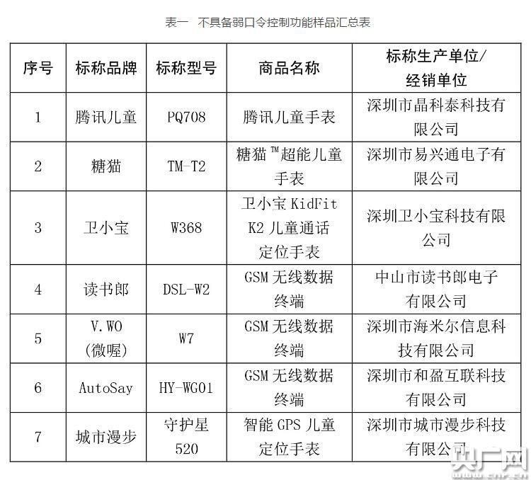 本次試驗對20塊智能手表的信息安全進行了測試,結(jié)果顯示,7塊兒童智能手表不具備弱口令控制的功能,即允許用戶使用諸如123456的簡單密碼等(詳見表一)。
