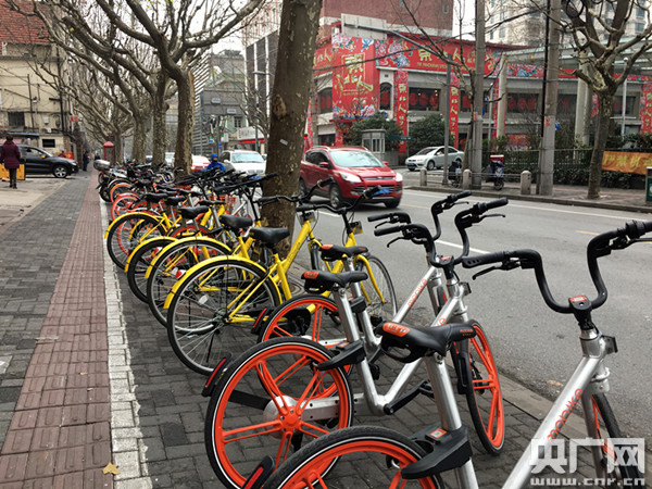 停在路邊的共享單車 (央廣網(wǎng)記者唐奇云 攝)