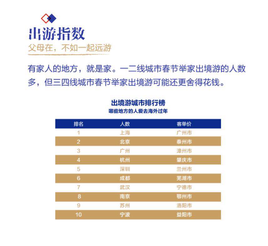 老話說:“父母在,不遠(yuǎn)游!比缃,“父母在,一起游”。近年來,趁著春節(jié)假期跟家人一起到海外旅游過年也成為新年俗的重要組成部分。飛豬數(shù)據(jù)顯示,在“最喜歡去境外過年的城市”中,上海在全國所有城市中排名第一名。