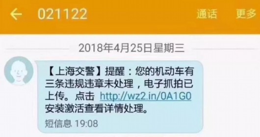 經(jīng)警方核實,發(fā)現(xiàn)該網(wǎng)民名下車輛并沒有交通違法記錄信息,同時,測試點擊了這個鏈接,確定該短信為虛假交通違法告知短信。警方提醒,一旦點擊短信內(nèi)的鏈接后,會打開一個網(wǎng)址,很有可能就中了騙子發(fā)的木馬病毒。