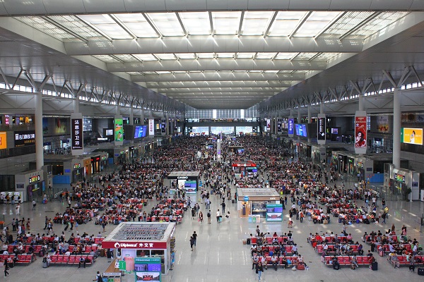 圖片說(shuō)明:上海虹橋站,旅客在候車室內(nèi)有序候車