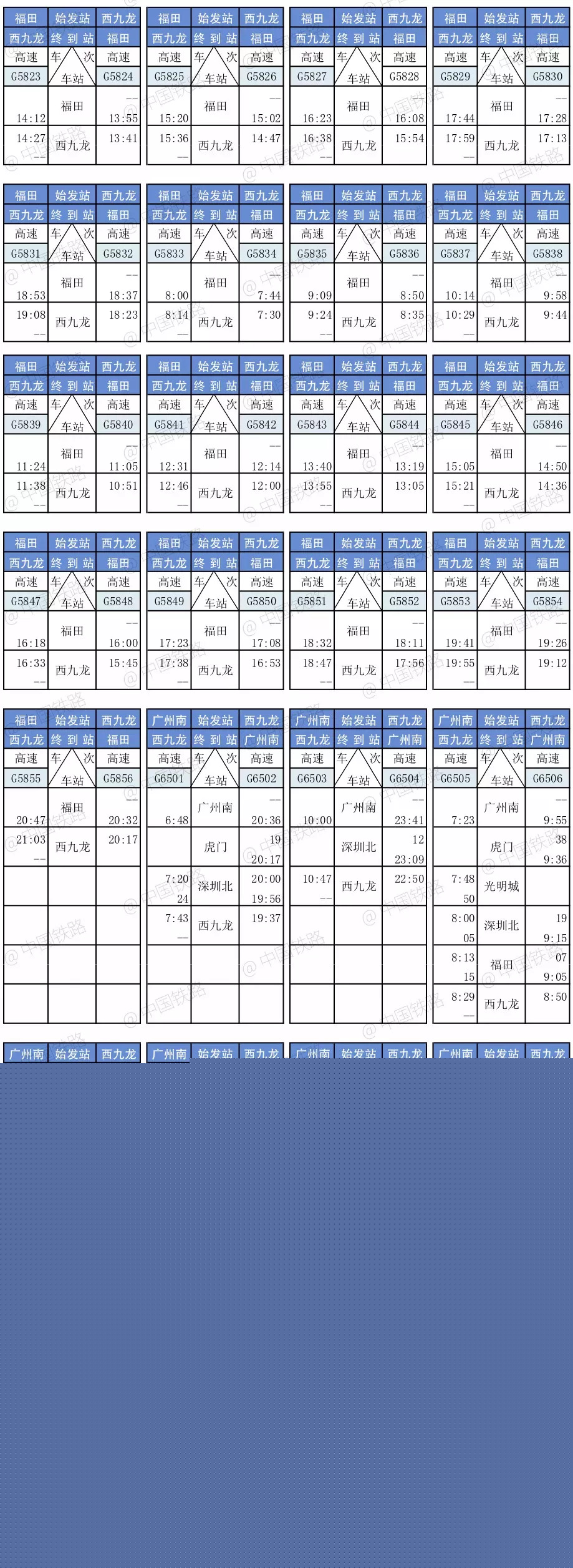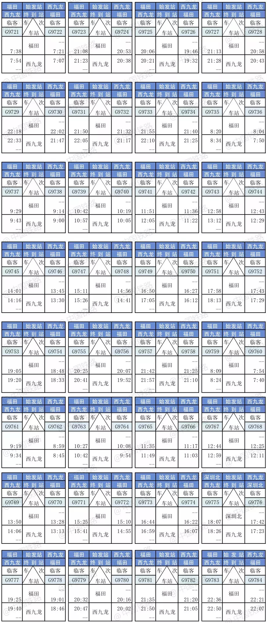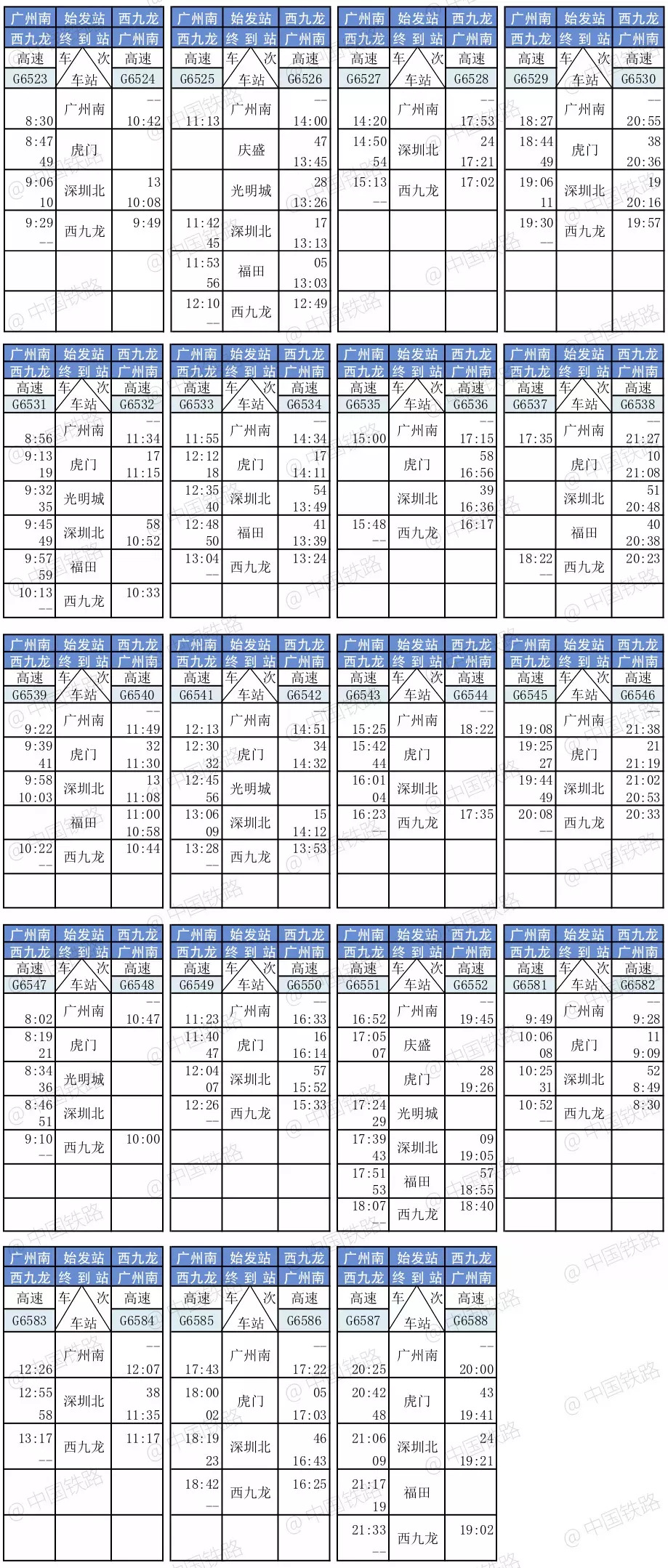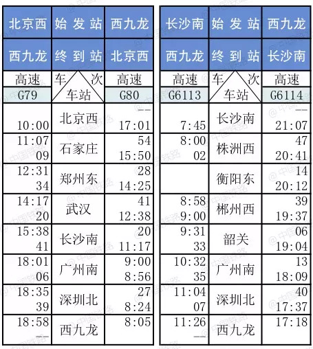 內(nèi)地主要車站至香港西九龍二等座票價(jià)表(人民幣)