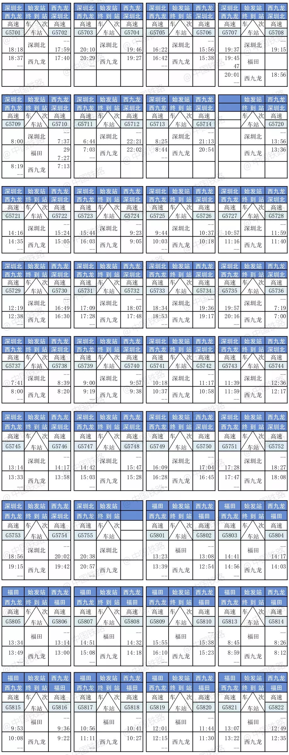 廣深港高鐵香港段開通運(yùn)營(yíng)后,可通達(dá)北京、上海、石家莊、鄭州、武漢、長(zhǎng)沙、杭州、南昌、福州、廈門、汕頭、貴陽(yáng)、桂林、昆明等城市,到達(dá)內(nèi)地40多個(gè)車站,將大大拉近香港與內(nèi)地城市間的時(shí)空距離。其中,從香港西九龍站出發(fā),至深圳福田站的列車最短運(yùn)行時(shí)間14分鐘,至廣州南站的列車最短運(yùn)行時(shí)間47分鐘,至上海虹橋站的列車運(yùn)行時(shí)間為8小時(shí)17分鐘,至北京西站的列車運(yùn)行時(shí)間為8小時(shí)56分鐘。