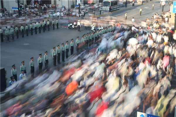 連續(xù)幾年擔(dān)負(fù)國(guó)慶安保執(zhí)勤任務(wù),對(duì)外灘區(qū)域的大客流已司空見慣了,但今年的人流量明顯早于和多于去年,當(dāng)潮水般的人群向執(zhí)勤區(qū)域涌來(lái)時(shí),我腦海里唯一想到的就是一定要組織指揮好部隊(duì),決不能有半點(diǎn)的疏忽,確保現(xiàn)場(chǎng)秩序和游客安全。