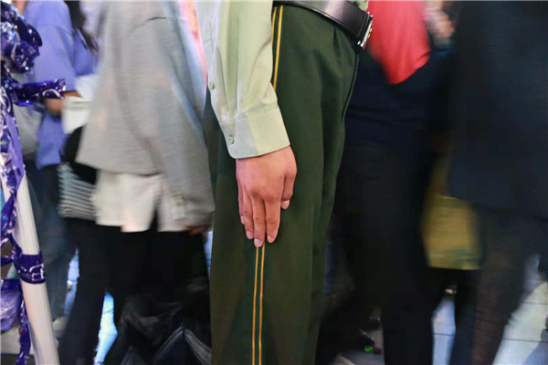 我們每天的執(zhí)勤時(shí)間將近12小時(shí),采取的是2班倒的模式,平均每人要在哨位上站至少6個(gè)小時(shí),人墻是1分鐘開合1次,一次執(zhí)勤下來(lái)大概開關(guān)30次。今年,是我第3次在南京路擔(dān)負(fù)國(guó)慶安保任務(wù),能在車水馬龍的南京路執(zhí)勤,保證國(guó)內(nèi)外游客的安全,我感覺(jué)很激動(dòng)也很自豪?