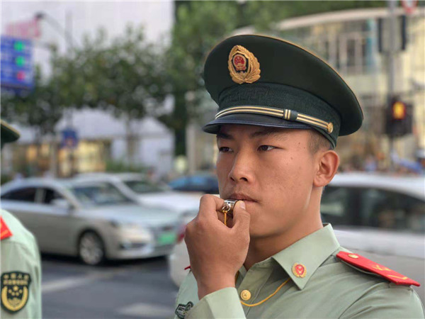 當(dāng)時(shí),南京路上人特別多,我和往常一樣,手持哨子指揮著班里的戰(zhàn)士疏導(dǎo)來(lái)往的游客。突然,耳邊傳來(lái)熟悉的呼喊聲,我回頭一看,竟然是遠(yuǎn)在外地的女友過(guò)來(lái)看我了!