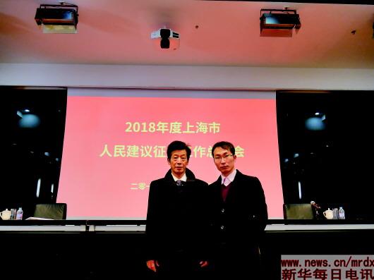 ▲虞國偉、王于杰兩父子一同參加2018年度上海市人民建議征集工作總結(jié)會。