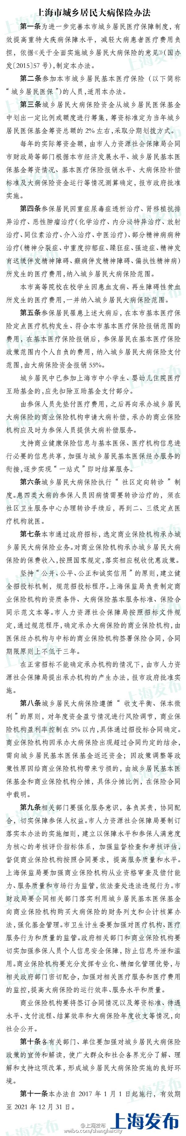 《上海市城鄉(xiāng)居民大病保險辦法》摘選