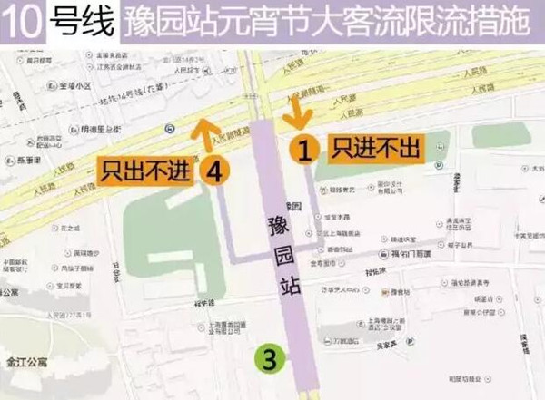 央廣網(wǎng)上海2月10日消息 據(jù)上海交通發(fā)布,明天元宵節(jié),如客流量過大,豫園站將采取限流措施,通往豫園的1號(hào)口只進(jìn)不出,4號(hào)口則是只出不進(jìn)(預(yù)計(jì)下午1時(shí)開始限流),單向進(jìn)出,防止客流對(duì)沖。