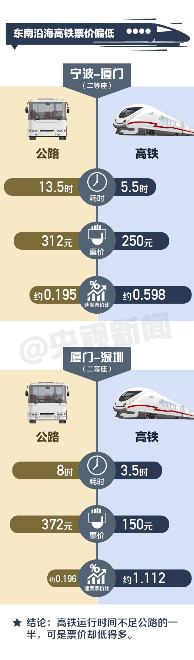 東南沿海高鐵80%的客座率卻不賺錢,原因是多方面的。鐵路部門認(rèn)為,其中一個(gè)重要原因是定價(jià)偏低,且明顯低于同區(qū)段公路票價(jià)。情況到底是什么樣?