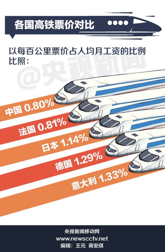 一提到價(jià)格,肯定有人會(huì)問:中國高鐵票價(jià)到底貴不貴?其實(shí),目前中國高鐵的基準(zhǔn)價(jià)并不高。來對(duì)比一下各國的高鐵票價(jià)。