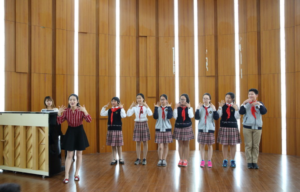 講演結(jié)束,曾經(jīng)參演中文版《音樂(lè)之聲》的趙嘉艷,還帶著市西初級(jí)中學(xué)合唱團(tuán),排練起了《音樂(lè)之聲》里耳熟能詳?shù)暮铣抖邅?lái)咪》。