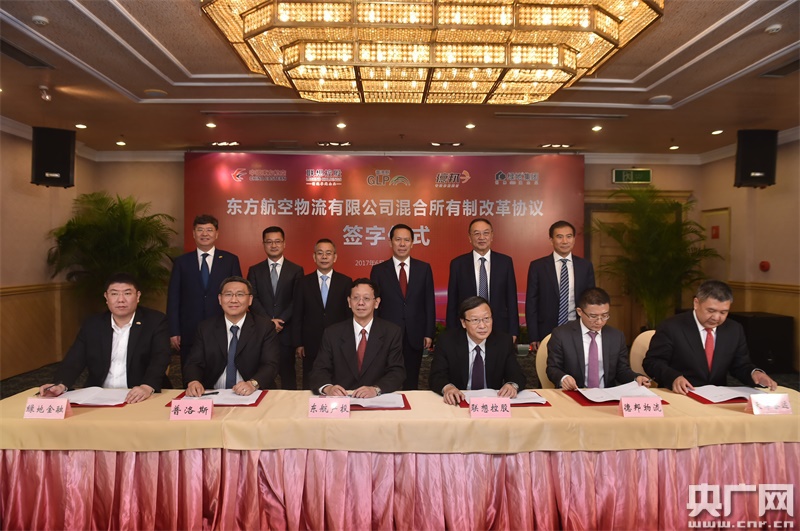 央廣網(wǎng)上海6月19日消息(記者吳善陽)中國東方航空集團公司旗下東方航空物流有限公司開展國家民航領(lǐng)域混合所有制改革試點取得重大成果。今天,東航集團與聯(lián)想控股股份有限公司、普洛斯投資(上海)有限公司、德邦物流股份有限公司、綠地金融投資控股集團有限公司等四家投資者,以及東航物流核心員工持股層代表,在上海正式簽署增資協(xié)議、股東協(xié)議和公司章程。這標志著國家首批推進的“七大領(lǐng)域”混合所有制改革試點在民航領(lǐng)域?qū)崿F(xiàn)“落地”;標志著東航集團主動適應經(jīng)濟發(fā)展新常態(tài),進一步做“優(yōu)”做“活”國有企業(yè),探索混合所有制改革取得實質(zhì)性成效;標志著東航集團、聯(lián)想控股、普洛斯、德邦、綠地和員工持股層所代表的各種所有制資本,緊密融合、共贏發(fā)展、共同打造中國民航領(lǐng)域混合所有制改革的“第一樣本”。