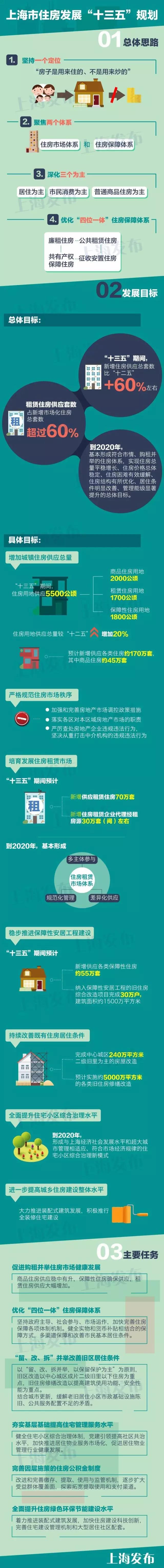 “十三五”期間,上海將繼續(xù)貫徹落實(shí)中央有關(guān)精神,堅(jiān)持“房子是用來住的、不是用來炒的”定位,繼續(xù)堅(jiān)持和完善兩個(gè)體系、“三個(gè)為主”、“四位一體”,逐步形成購(gòu)租并舉的住房體系。一方面推進(jìn)房地產(chǎn)市場(chǎng)供給側(cè)結(jié)構(gòu)性改革,顯著增加住房供應(yīng),優(yōu)化住房供應(yīng)結(jié)構(gòu),提高中小套型普通商品住房供應(yīng)比例;另一方面強(qiáng)調(diào)建立健全房地產(chǎn)市場(chǎng)發(fā)展長(zhǎng)效機(jī)制,堅(jiān)持房地產(chǎn)市場(chǎng)調(diào)控不動(dòng)搖。進(jìn)一步完善并嚴(yán)格執(zhí)行房地產(chǎn)市場(chǎng)調(diào)控政策,研究建立符合市情、適應(yīng)市場(chǎng)規(guī)律的基礎(chǔ)性制度和長(zhǎng)效機(jī)制。嚴(yán)格規(guī)范住房市場(chǎng)秩序,加強(qiáng)商品住房預(yù)售管理和房地產(chǎn)中介監(jiān)管,強(qiáng)化對(duì)房地產(chǎn)企業(yè)、中介機(jī)構(gòu)違規(guī)違法行為的查處。