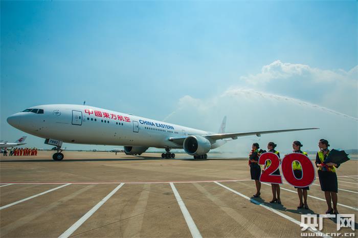 央廣網(wǎng)上海7月23日消息(記者吳善陽)一架編號為B-7882的波音B777-300ER飛機今天從西雅圖飛抵上海浦東機場,飛機經(jīng)過“水門”儀式的洗禮,正式加盟東航650余架機隊的“大家庭”,標(biāo)志著東航于2012年4月采購的20架波音777-300ER全部交付完畢。20架“集結(jié)”完畢之后將發(fā)揮出更佳的規(guī);瘍(yōu)勢,更好地服務(wù)于“一帶一路”建設(shè),服務(wù)于上海樞紐建設(shè),為全球乘客帶來非同一般的空中旅行體驗。