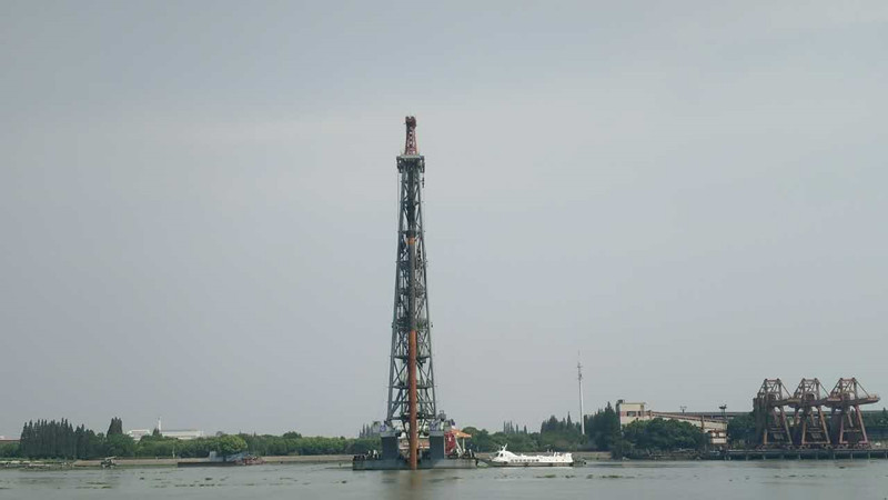 記者在施工現(xiàn)場看到,一根根巨大的鋼管樁通過運輸船運至黃浦江中心的橋位處,再由打樁船將其豎起,通過柴油錘整根打入河床中。這些直徑1.5米的鋼管樁每根長度達到了70米,豎起時相當于25層樓的高度,而重量則達到了60噸。