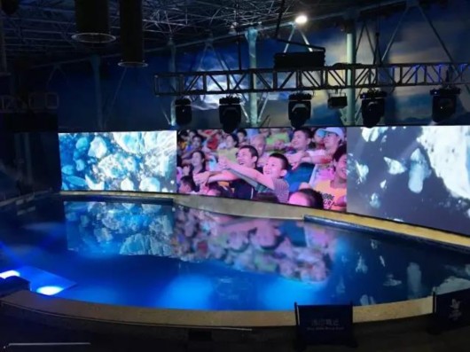 全新的白鯨表演結(jié)合聲光水影四重元素,呈現(xiàn)出星移斗轉(zhuǎn)、時(shí)空穿越、水影一體的多維震撼視覺效果。透過寬屏環(huán)幕的展示,觀眾們?cè)谔貏e的場景里以“親歷模式”與白鯨姐妹和極地動(dòng)物們進(jìn)行零距離接觸,帶來一場流連忘返的全新沉浸式觀賞體驗(yàn)。演出過程中,觀眾還能直觀地感受到馴養(yǎng)師和白鯨的默契配合,同時(shí)還能聽到白鯨姐妹優(yōu)美動(dòng)人的歌聲。