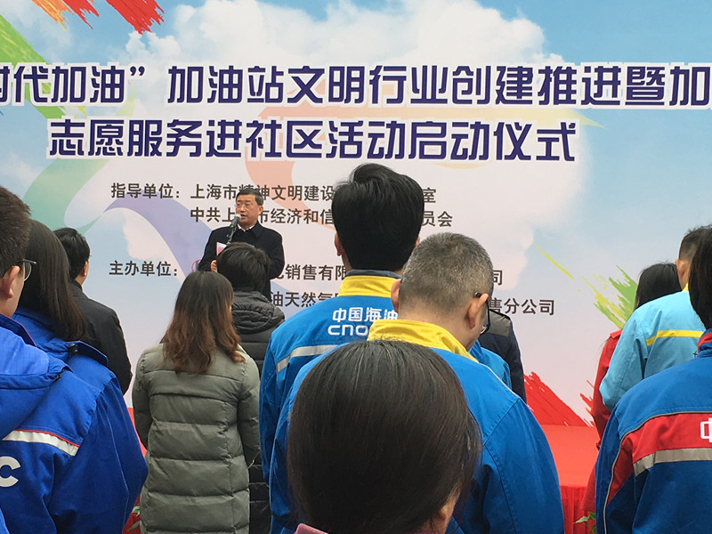 上海市委宣傳部副部長(zhǎng)、市文明辦主任潘敏出席儀式并講話,市經(jīng)濟(jì)和信息化工作黨委書記、市經(jīng)信系統(tǒng)文明委主任陸曉春出席儀式并致辭,市經(jīng)濟(jì)和信息化工作黨委副書記、市經(jīng)信系統(tǒng)文明委副主任馬列堅(jiān)出席儀式并授志愿服務(wù)旗,市經(jīng)濟(jì)信息化委副主任吳金城主持。中石化上海石油分公司、中石油上海銷售分公司和中海油銷售上海公司相關(guān)領(lǐng)導(dǎo)出席。