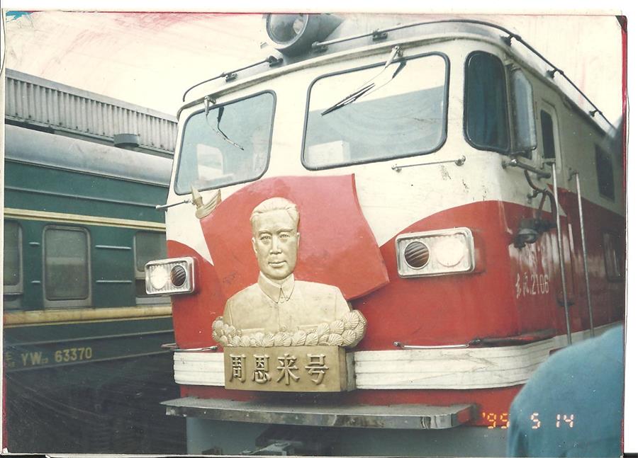第三代周恩來(lái)號(hào)機(jī)車東風(fēng)11-1898 圖片來(lái)源:上海機(jī)務(wù)段 40年來(lái),“周恩來(lái)號(hào)”機(jī)車經(jīng)歷了四次換型。1978年命名時(shí),使用的是東風(fēng)3型0058號(hào)機(jī)車;1984年換型為東風(fēng)4型2106號(hào)機(jī)車;1997年更換為東風(fēng)11型機(jī)車,并以周總理誕生年份1898為機(jī)車編號(hào)。隨著電力牽引的發(fā)展,2015年,第四代“周恩來(lái)號(hào)”機(jī)車——“和諧型”HXD1D -1898號(hào)正式上線運(yùn)行。至今,機(jī)車擔(dān)當(dāng)著上海-南京K1555/K1556次旅客列車牽引任務(wù),不久的將來(lái),機(jī)車牽引區(qū)段將延伸至周恩來(lái)的故鄉(xiāng)——淮安。 -
