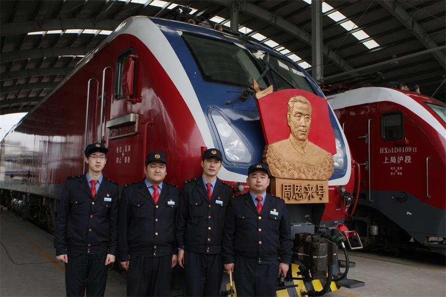 現(xiàn)任第十任司機(jī)長(zhǎng)計(jì)磊及機(jī)車組成員 圖片來(lái)源:上海機(jī)務(wù)段 上海機(jī)務(wù)段黨委書(shū)記徐敢峰表示,“周恩來(lái)”號(hào)目前承擔(dān)了上海機(jī)務(wù)段客運(yùn)交路當(dāng)中安全壓力最大、交路最為復(fù)雜、操縱最為困難的一段,為上海機(jī)務(wù)段1500名乘務(wù)員當(dāng)好榜樣,做好示范。 -