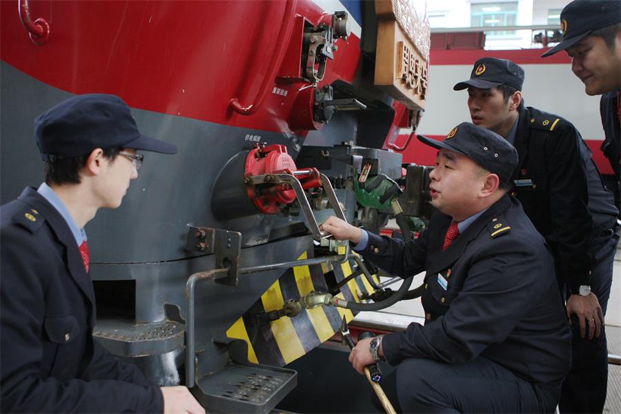 機(jī)車組成員在檢查設(shè)備 圖片來(lái)源:上海機(jī)務(wù)段 “新的時(shí)代、新的引領(lǐng),我們‘周恩來(lái)號(hào)’機(jī)車組成員一定牢記使命,繼續(xù)傳承偉人精神,勇往直前,當(dāng)好排頭兵,為中國(guó)鐵路運(yùn)輸事業(yè)的發(fā)展做出新的更大貢獻(xiàn)!边@是班組成員發(fā)出的共同心聲。
