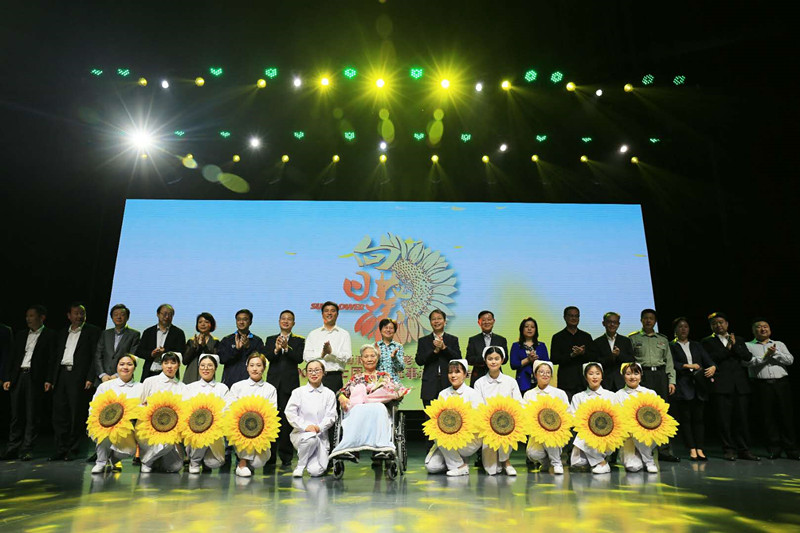 會(huì)上,“90后”護(hù)士們?yōu)樽≡旱睦先藗兪鑼?dǎo)悲傷孤獨(dú)的情緒,為老人們畫畫,用手手相傳的溫度悉心護(hù)理、照顧年邁又失能失智的老人,讓護(hù)理院真正成為老人們的又一個(gè)“家”。滬東老年護(hù)理院9位90后護(hù)士還一同演唱歌曲《向日葵》,這首專為90后護(hù)士作詞作曲的原創(chuàng)曲目,表達(dá)了90后護(hù)士們?cè)敢宰≡豪先藶橹行,照顧好高齡老人,用朝陽(yáng)守護(hù)夕陽(yáng),一同在新時(shí)代追求健康生活的美好心聲。