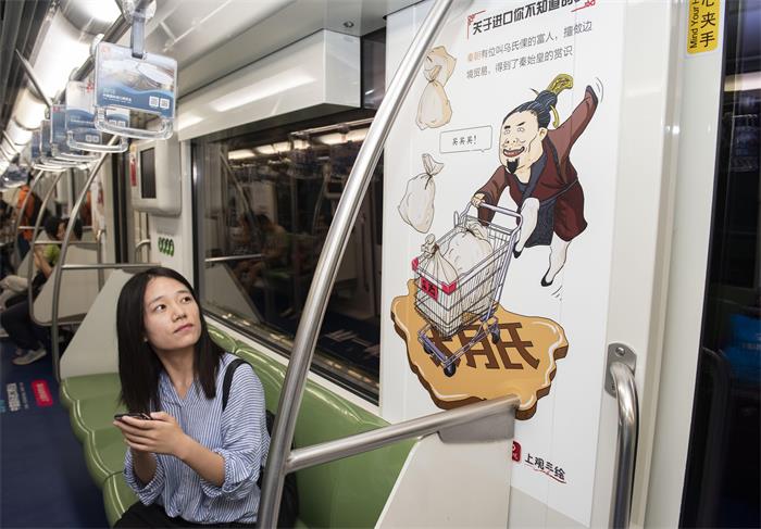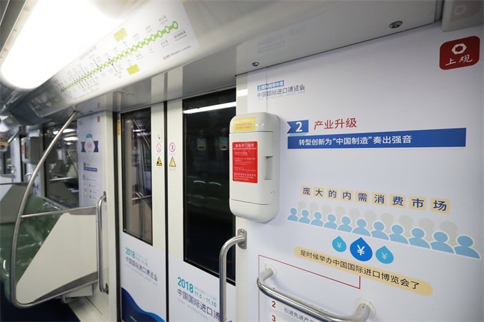 為進(jìn)一步提升民眾知曉度,同時為首屆進(jìn)口博覽會倒計時100天至正式開幕營造良好氛圍,中國國際進(jìn)口博覽局、解放日報·上觀新聞和申通地鐵集團(tuán),共同策劃和設(shè)計了4列“進(jìn)口博覽會專列”地鐵。專列采用內(nèi)外全景主題裝飾,通過圖示、漫畫、留言寄語等形式,全面介紹舉辦中國國際進(jìn)口博覽會的意義、亮點等。