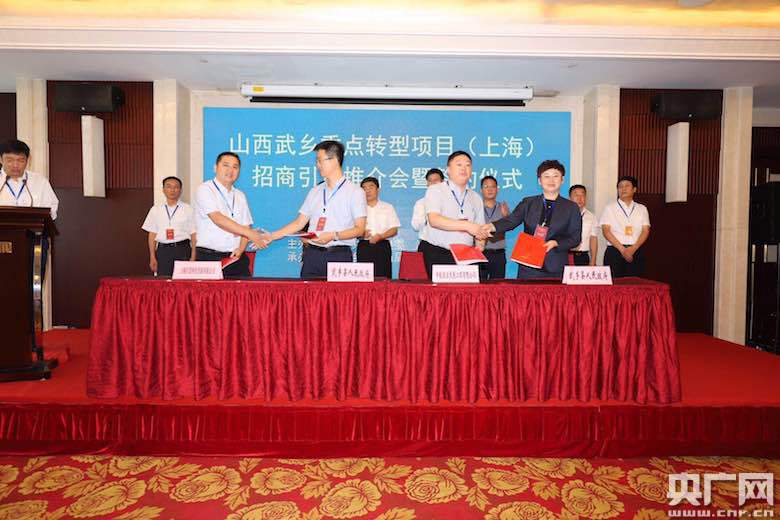 山西省武鄉(xiāng)縣重點(diǎn)轉(zhuǎn)型項(xiàng)目招商引資推介會(huì)暨簽約儀式在滬舉行。(央廣網(wǎng)記者 韓曉余 攝)